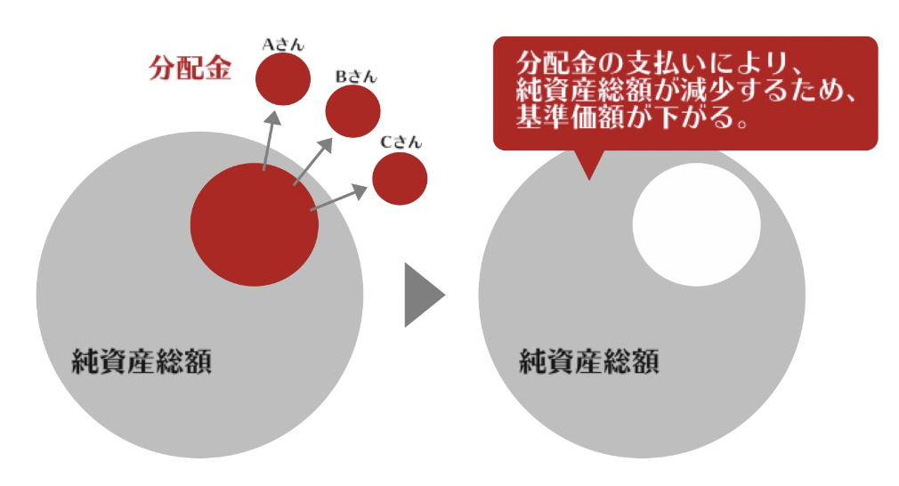 投資信託は分配金が支払われるたびに純資産総額が減少し、基準価額も下がるため投資効率が下がってしまいます。