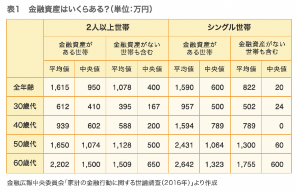 「老後2000万円問題」を取り上げる前に、そもそも平均的な日本人はどれくらい金融資産を保有しているのでしょうか?